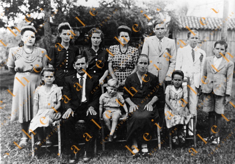 Meleiro, Santa Catarina, 1935. Famiglia di Angelo Dal Pont (di Ponte nelle Alpi) e Lucia Burigo “Gol” (di Soverzene, nata nel 1897, figlia di Pietro), con i 10 figli.