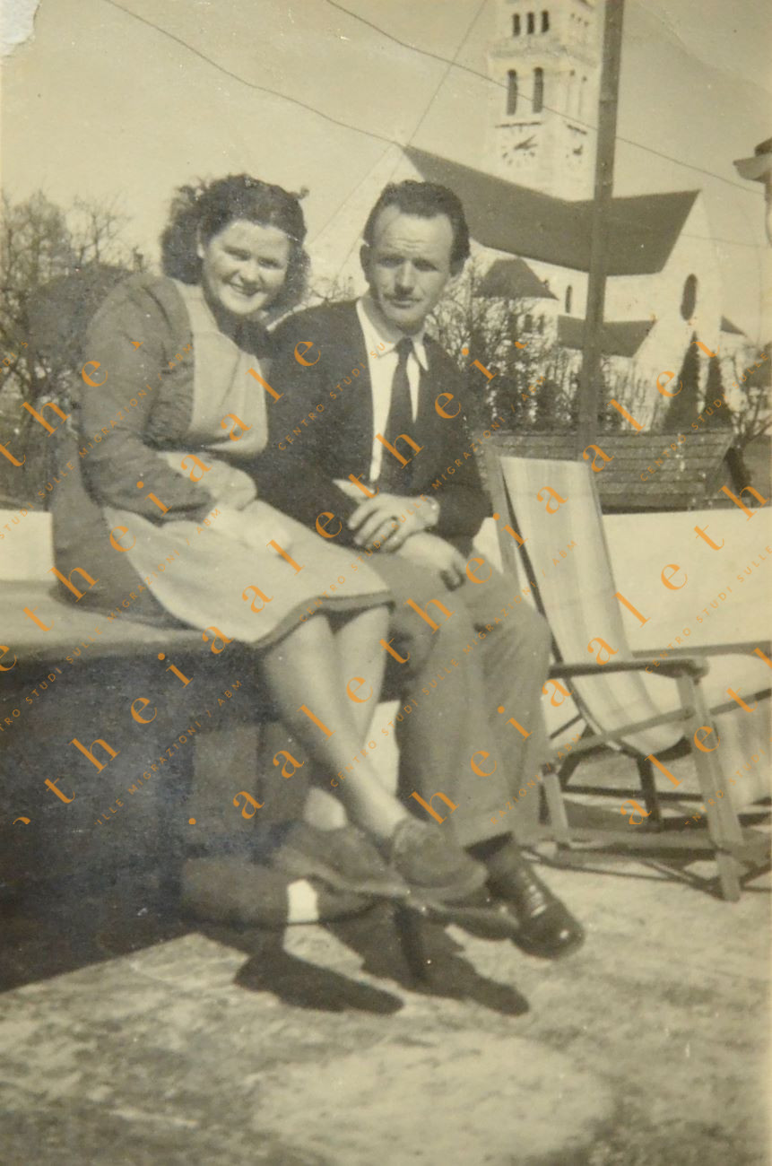 Pietro D’Alpaos (nato a Tignes nel 1915) e la moglie Anna Bortoluzzi, in una giornata di riposo, sulla terrazza della casa di una sorella di Pietro.