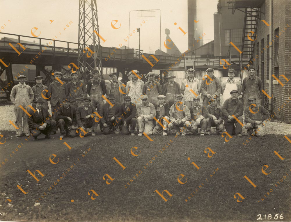 Augusto Rivis, il terzo in piedi da sinistra, con i compagni di lavoro presso l’industria siderurgica ARMCO, acronimo di American Rolling Mill Company, società fondata nel lontano 1899 che riuscì a produrre, nel 1909, il ferro più puro al mondo il quale, grazie alle sue straordinarie proprietà, è tutt’oggi utilizzato dalle più moderne industrie mondiali.