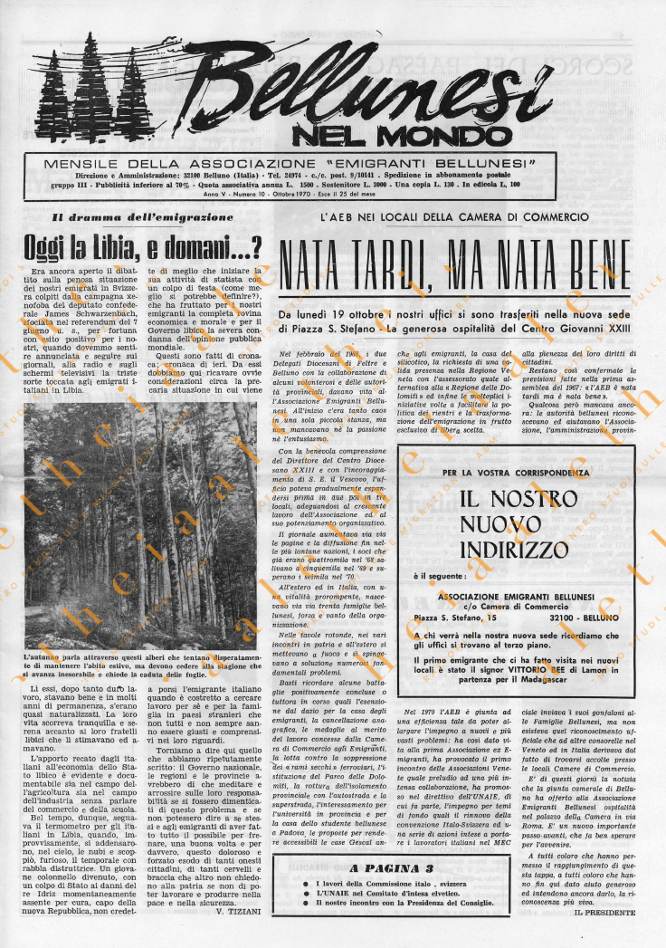 Il numero 10 – ottobre 1970 della rivista “Bellunesi si nel mondo”.
