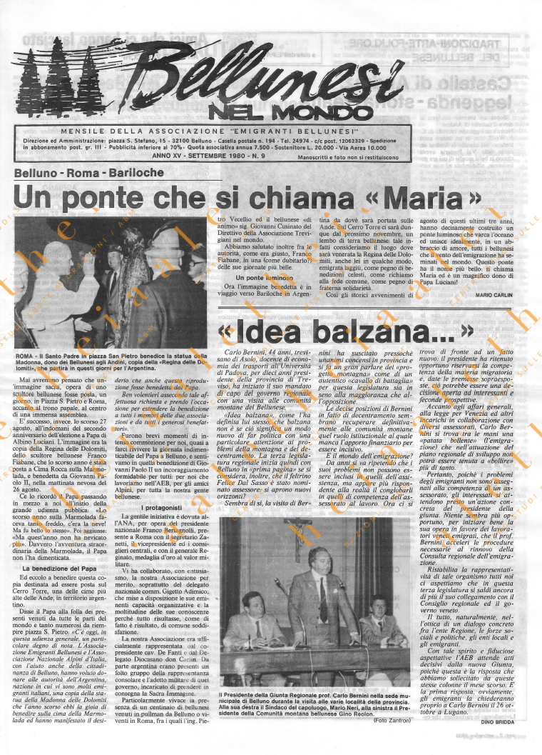Il numero 9 – settembre 1980 della rivista “Bellunesi si nel mondo”