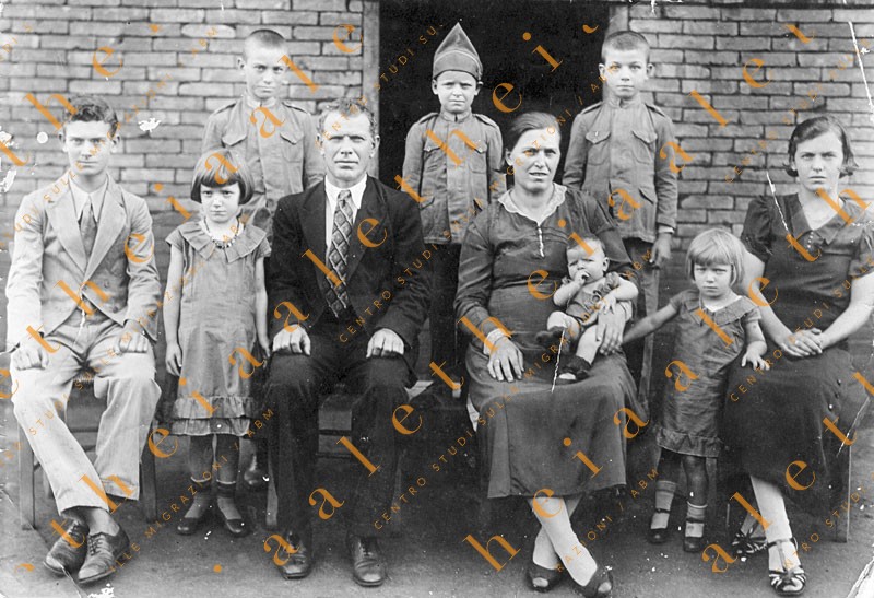 Famiglia di Bortolo D’Ambros e Genoefa Webber, con otto dei loro nove figli, anni ’30. Seduti, da sinistra a destra: Nelson, Lídia, Bortolo, Genoefa con Elis in braccio, Alda e Gioanina. In piedi, da sinistra a destra: Dorvalino, Olavio e Laurindo.