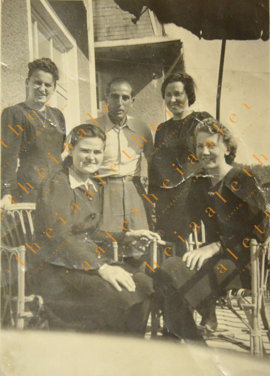 Anna Bortoluzzi (seduta a sinistra) con alcune colleghe nell’albergo di Cortina dove, nel periodo della guerra, prestò servizio con la qualifica di cameriera ai piani.