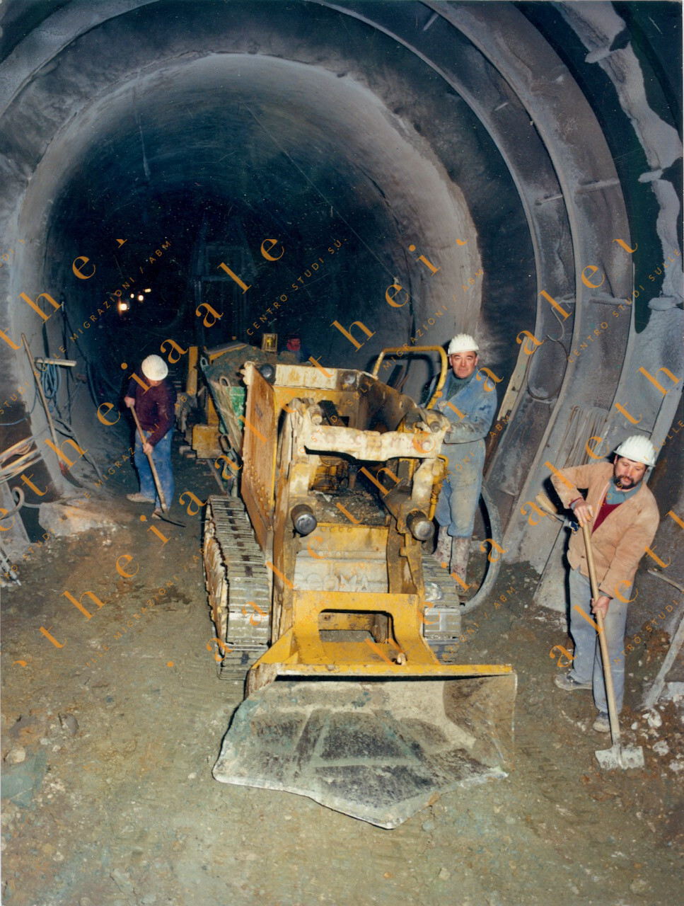 Sarmede, anni ’90. Daniele Garlet, di San Gregorio nelle Alpi (secondo da destra), al lavoro in galleria.