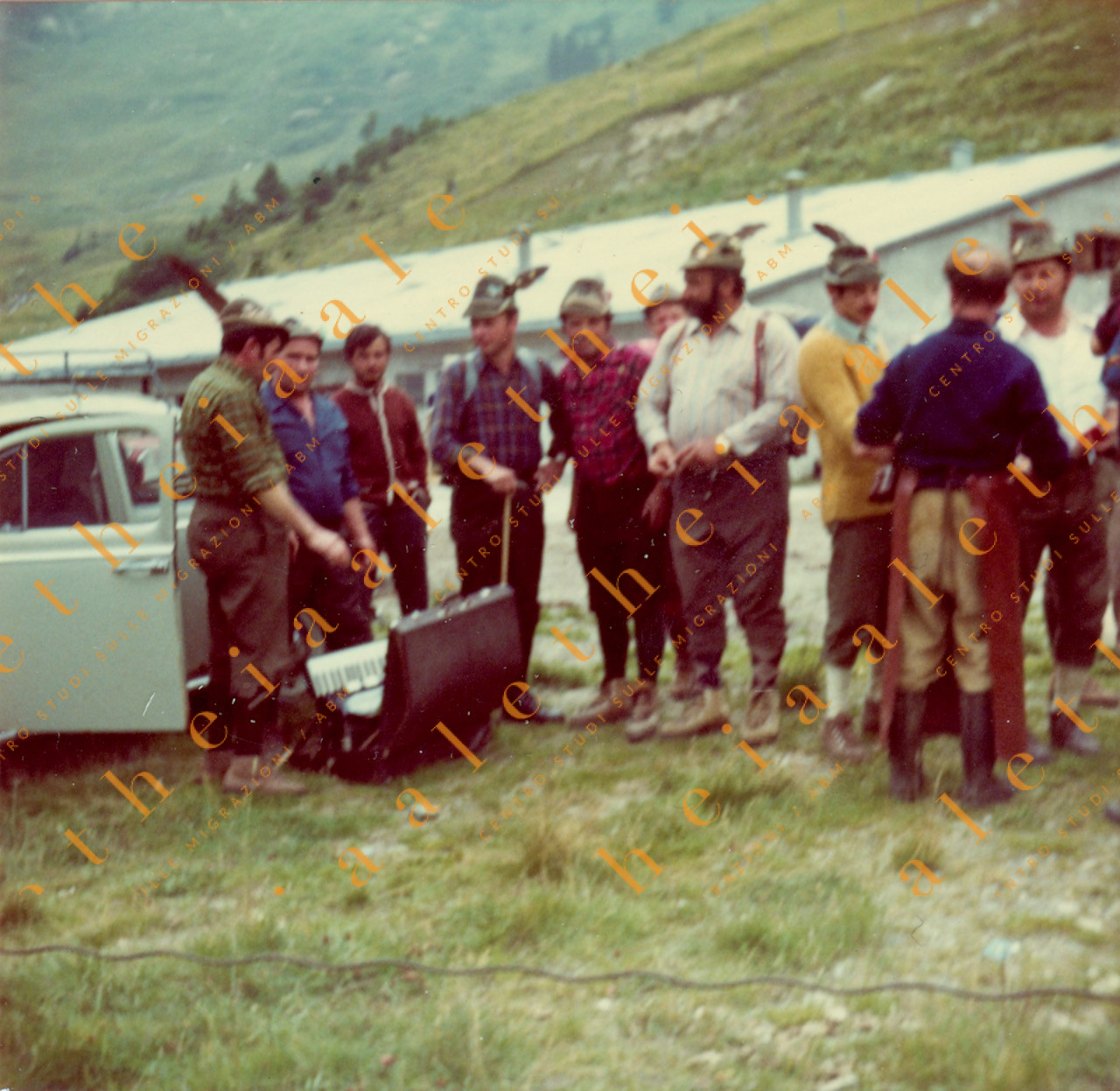 Festa in montagna dell’Associazione Alpini di Wil (Canton San Gallo, Svizzera). Il quinto da sinistra è il bellunese Mosè D’Incà.