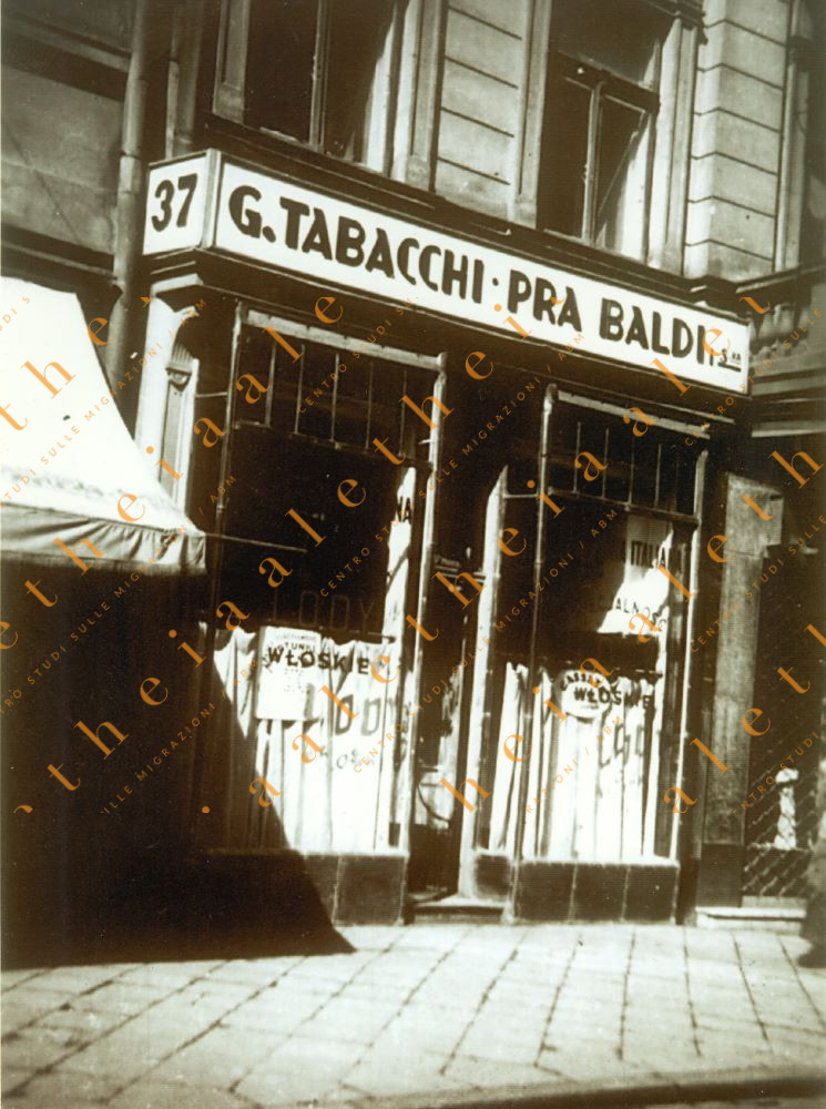 Varsavia (Polonia), 1939. La vetrina della Gelateria Italiana di Libero Pra Baldi e Guglielmo Tabacchi (fondatore della Safilo). (Per gentile concessione della Famiglia ex Emigranti del Longaronese).
