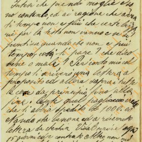 Intesi che prendi moglie e sono contento, ed ai ragione che avanti tempo non e più che certe bizzarie per la testa non vanno e se si pentisse quando che non e più tempo, cosa ti pare? che dico bene o male? Per conto mio col tempo ti scriverò una lettera a proposito ed allora saprai tutte le cose da principio fino alla fine. Cente quel pagliaccio crede che ti abbia spedito ₤ 1000.00