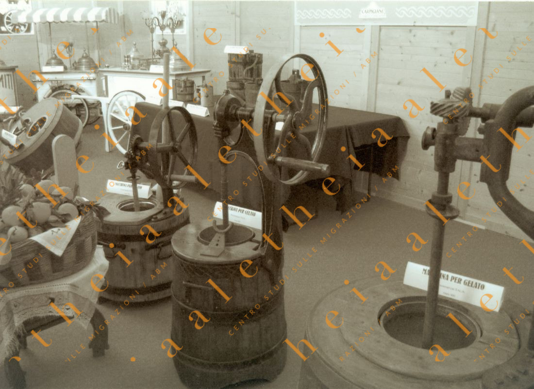 Mantecatrici manuali, di diverse taglie, per la preparazione del gelato in uso nei primi anni del ‘900. (Per gentile concessione della Famiglia ex Emigranti del Longaronese).