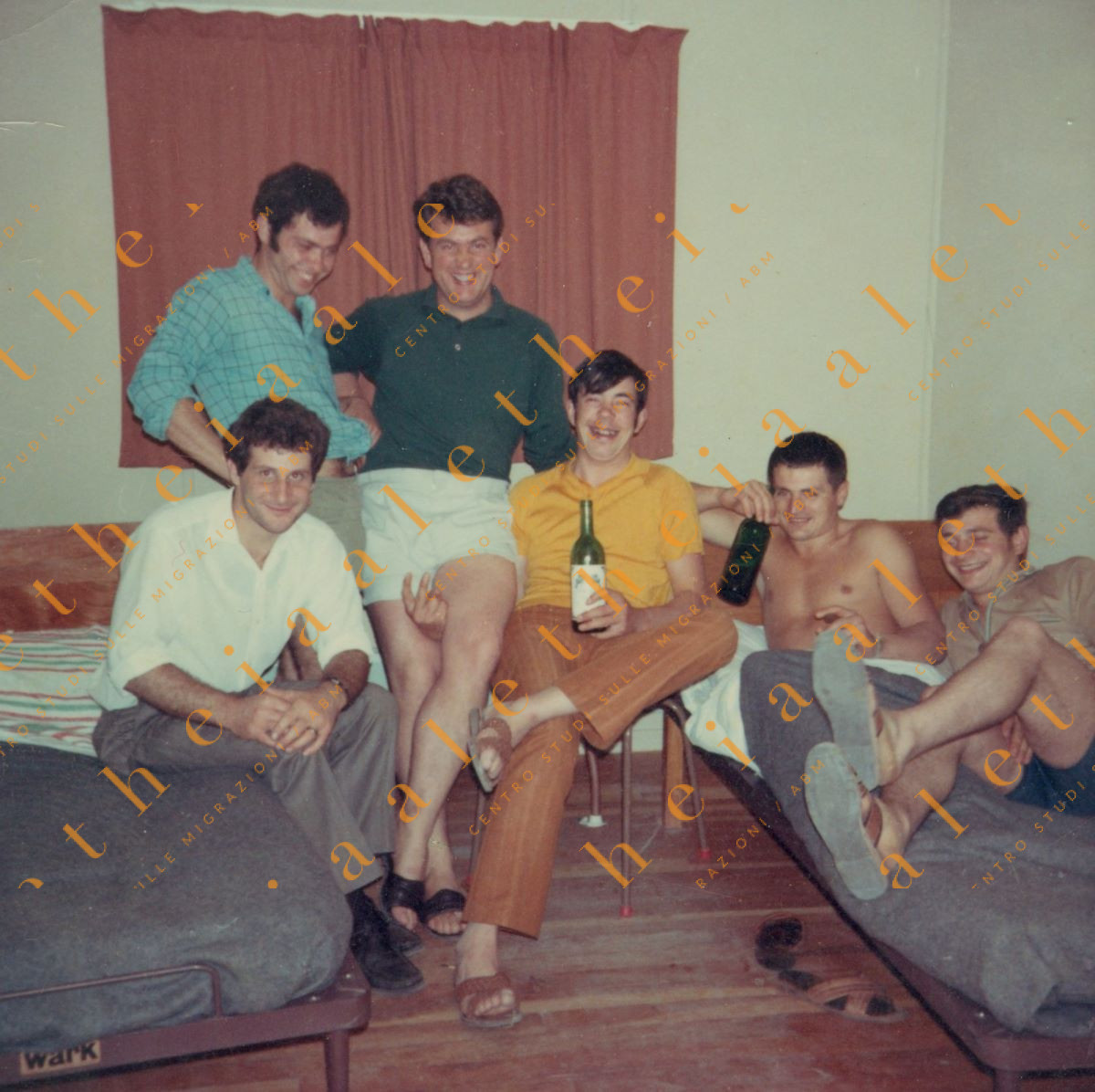 Quattro risate e un bicchiere in compagnia: ritrovo in camerata di colleghi bellunesi e trevisani, dopo una giornata di lavoro.