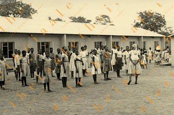 Rhodesia, fine anni ’50. Ginnastica in un villaggio di Kariba.