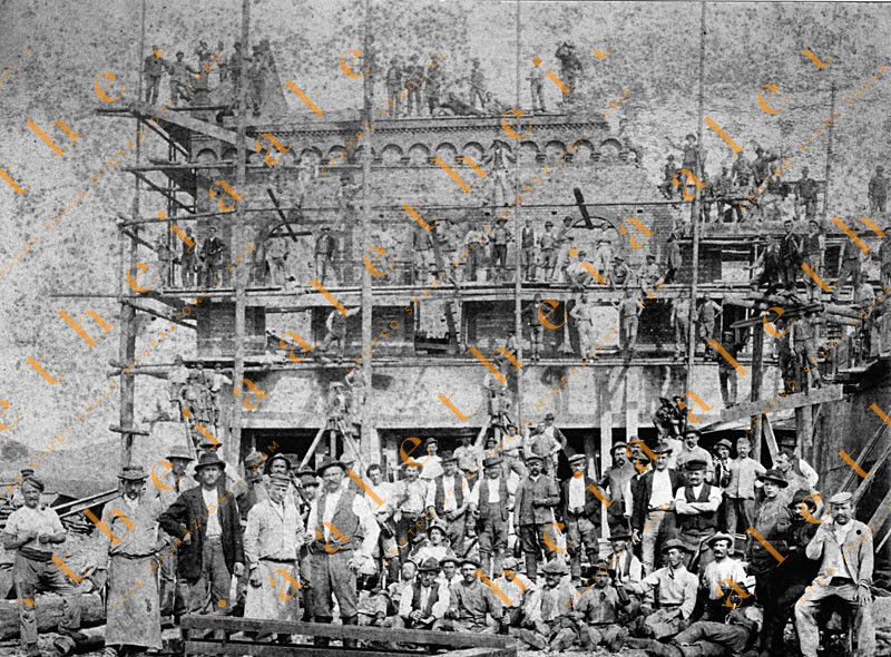Costruzione di un edificio a Tübingen, in Germania, anno 1902. Tra gli operai anche molti bellunesi e agordini. Fotografia ritrovata a Falcade alto, località Ganz.