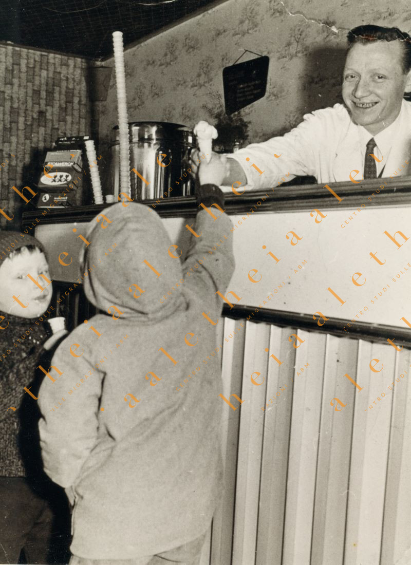 Ahaus (Germania), 1960. Due piccoli avventori soddisfatti del loro cono gelato servito da un sorridente Ugo De Cesero nella sua gelatera Eis Cafè “Capri”. (Per gentile concessione della Famiglia ex Emigranti del Longaronese).