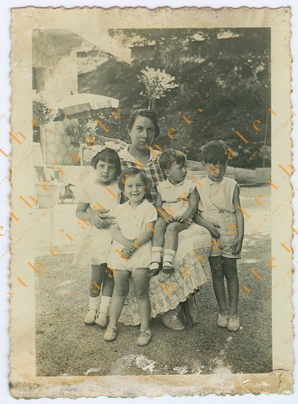 Vittoria De Min, balia a Torino all’inizio degli anni ’30, con un gruppo di bambini.